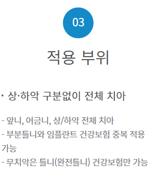 적용하는 부위는 아래턱, 위턱 구분 없이 어금니, 앞니 모두 적용됩니다.