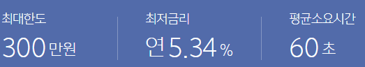 대출한도는 최소 50만원 이상 최대 3백만원 이하로 은행 내규에 따라 금리 및 한도가 정해집니다.