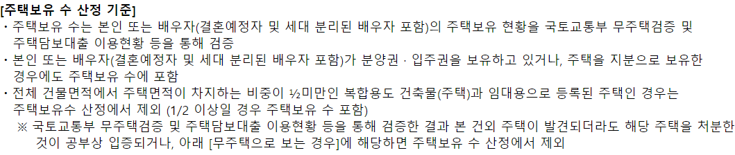 주택 조건은 부동산 등기사항전부증명서 상 '주택'으로 구분되는 아파트,연립주택,다세대주택,단독주택(다가구주택 포함),근린주택