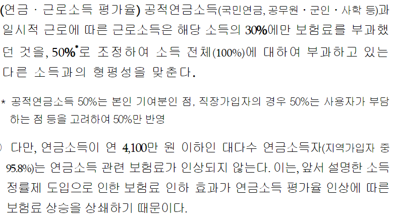 그동안 직장가입자는 연간 보수(월급) 외 소득이 3천 4백만원을 초과할 경우에만 보험료를 부과하여 모든 소득에 대해 보험료를 납부하는 지역가입자와의 형평성 문제가 지속적으로 제기되어 왔습니다.