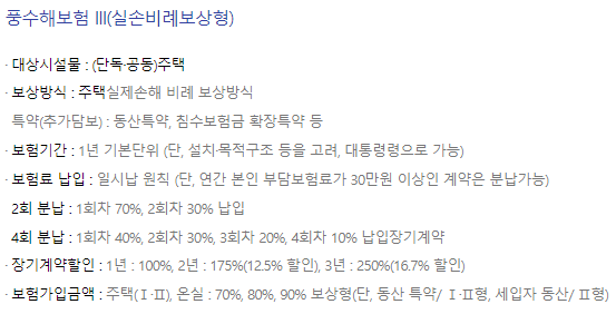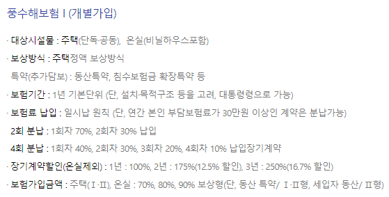 보통 비율은 정부지원 70 ~ 92% , 가입자부담 8 ~ 30%로 풍수해보험에 들지 않을 이유가 없겠죠?