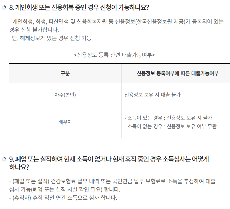 - NICE신용평가기준 CB점수가 271점 이상인 경우만 취급 가능