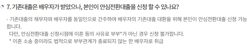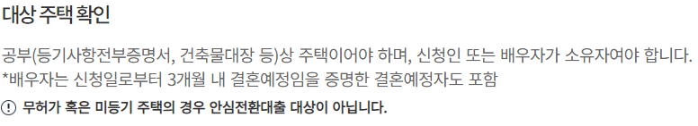 이번 안심전환으로 대환하려는 기존 대출은 아래의 요건을 충족해야 합니다.