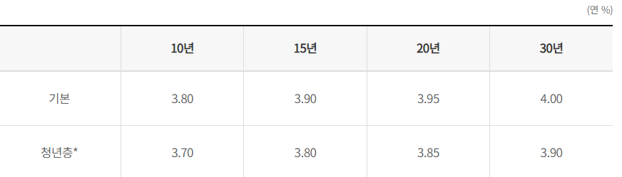 대출의 만기는 10년 ,15년, 20년, 30년 중 선택이 가능하며 만기가 길수록 DTI는 낮아집니다.