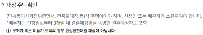 아래는 대출이 가능한 대상 주택에 관한 설명입니다.