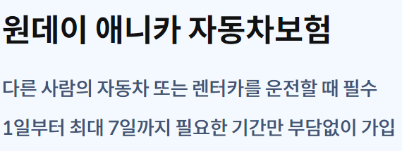 단 보험 가입기간이 7일 정도로 길게 가입을 해야하는 상황이라면 7일치 보험료의 차액이 크게 돌아오므로 잘 비교해서 가입하시길 바랍니다.