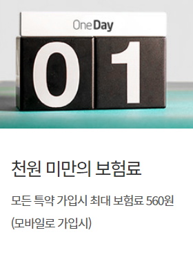 큰 보험료 부담 없이 원하는 기간에만 하루씩 가입이 가능합니다.