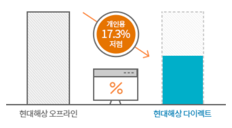 비대면으로 가입 시 오프라인 대비 평균 17.3%를 아낄 수 있다는 게 현대해상의 설명이며 왠만한 손해보험사들 대부분이 비대면 가입으로 보험료 할인 혜택을 주고 있습니다.