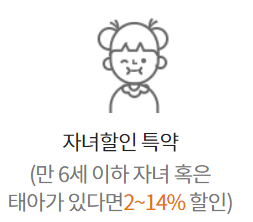 자녀할인 특약은 만 6세 이하 자녀가 있거나 임신중이라면 특약할인 혜택을 받을 수 있습니다.