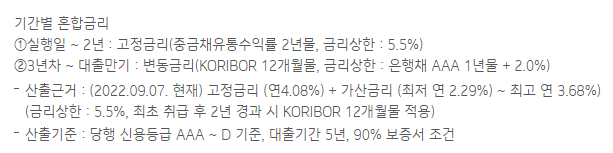 2년 차까지 금리 상한 5.5% 그 후 3년차부터 대출만기까지 변동금리를 적용합니다.
