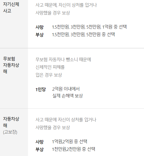 캐롯 퍼마일 다이렉트 자동차보험 보장 내용 및 한도