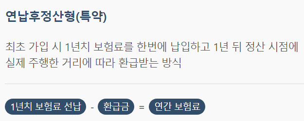 1년치 보험료를 선납하고 실제 주행거리에 따라 환급을 받는 방식입니다.