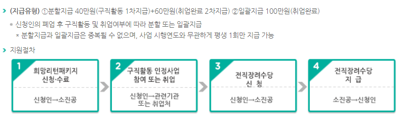 지원사업 〉 희망리턴패키지 〉 전직장려수당 (semas.or.kr)