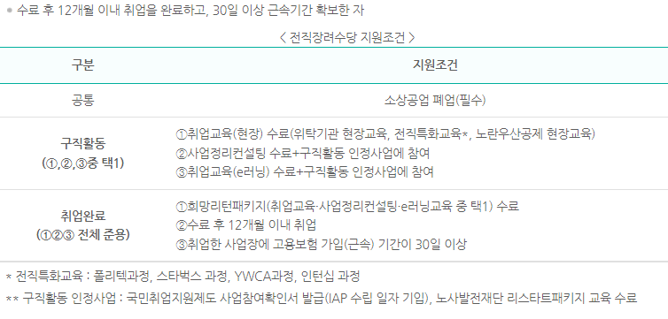- 취업 현장교육 수료 또는 컨설팅 -e러닝 수료 후 구직활동 인정 사업에 참여한 자