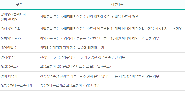 전직장려수당 지원제외 대상