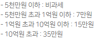 인지세란 대출 거래 신규 약정 시 내는 세금으로 대출금액에 따라 아래와 같이 차등 적용되며 이 인지세는 은행과 고객이 각각 50%씩 부담하게 됩니다.