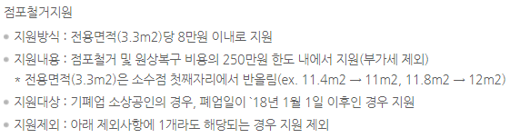 - 소상공인기본법 제 2조에 따른 소상공인 중 공고일 기준 폐업을 하였거나 폐업 예정인 분