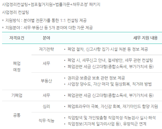 지원사업 〉 희망리턴패키지 〉 원스톱폐업지원 (semas.or.kr)