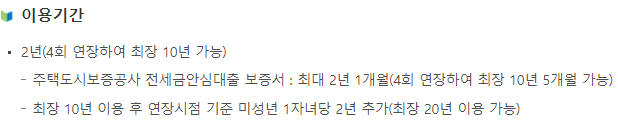 - 대출접수일 현재 민법상 성년(만 19세가 되는 해의 1월 1일 맞이한 미성년자 포함)인 만 34세 이하의 세대주 및 세대주 예정자여야 하며 만일 병역의무를 이행한 경우 병역 복무기간에 비례하여 자격기간을 연장하되 최대 만 39세까지만 연장됩니다.