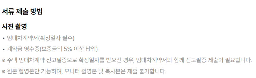 - 수도권일 경우 전세 및 월세 보증금은 7억원 이하 수도권 외 지역은 보증금 5억원 이하인 임대차계약을 체결한 임차인만 가능합니다.