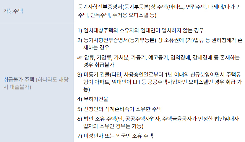 대출이 가능한 대상 주택은 아래와 같습니다.