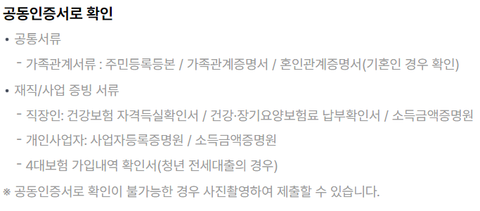 대출 신청 시 서류제출은 아래 사진촬영을 통한 제출 및 공동인증서를 통해 제출하게 되니 참고 하시길 바랍니다.