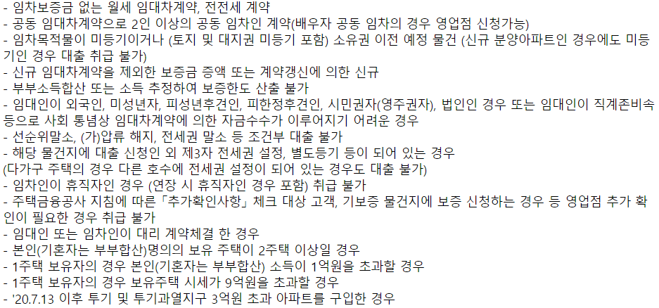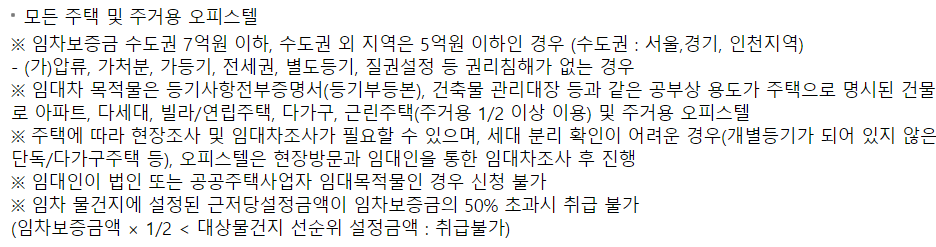 - 임대차계약사실확인서 징구 생략 불가 대상자의 경우 취급 불가