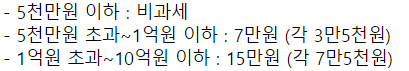 또한 인지세라는 세금이 존재하는데 인지세란 인지세법에 의해 대출 신규 약정 시 내는 세금으로 대출 금액에 따라 아래와 같이 세액이 차등 적용되며, 이 인지세 비용은 고객과 은행이 각각 50%씩 부담하게 되있습니다.