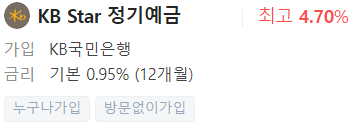이 상품은 누구나 방문 없이 가입이 가능한 상품으로 국민은행의 대표 예금 상품입니다.