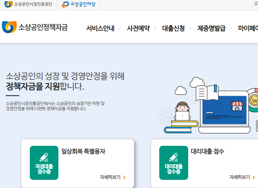 소상공인 정책자금 홈페이지에 들어가 대리대출 접수를 누르면 됩니다.
