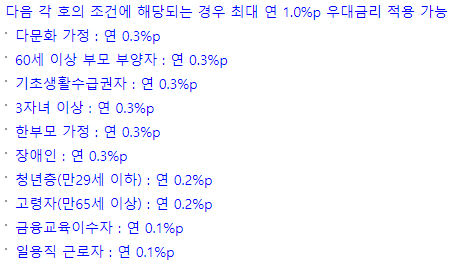 대출금리 산정은 기준금리 + 가산금리 - 우대금리를 적용하여 최종 적용금리가 산정됩니다.