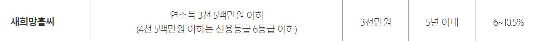 새희망홀씨는 은행권에서 소득이 적거나 신용이 낮아 은행에서 대출을 받기 어려운 계층을 위해 따로 별도의 심사기준을 마련하여 대출 해주는 은행의 서민 맞춤형 대출 상품입니다.