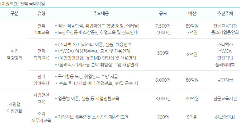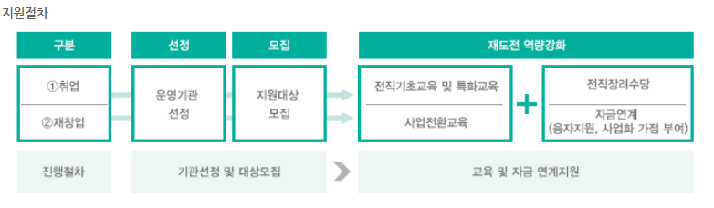 - 전직 기초,특화 교육의 경우 만 69세이하까지 지원하며 해당 소상공인의 배우자까지 지원합니다.