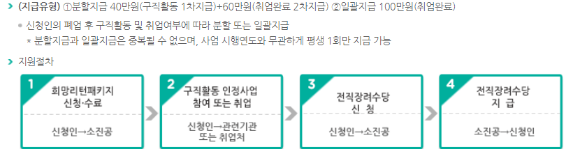 희망리턴 패키지는 폐업 및 폐업 예정인 소상공인분들을 위한 패키지로 폐업 및 직전의 소상공인의 재기를 돕는 사업입니다.