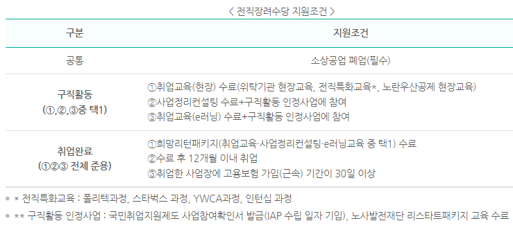 전직장려수당의 지원 목적은 구직활동이나 취업한 폐업 소상공인에게 소정의 수당을 지급, 임금 근로자로의 안정적인 전환 및 재기를 지원하기 위한 목적입니다.