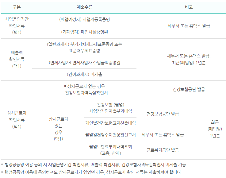 - 소상공인기본법 제 2조에 따른 소상공인 중 공고일 기준 폐업을 하였거나 폐업 예정인 분