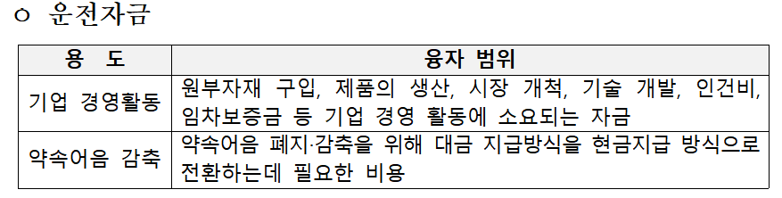시설자금이나 운영자금으로 사용가능합니다.