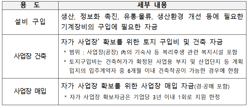 대출의 기간은 시설 자금의 경우 10년 이내 상환하면 되고