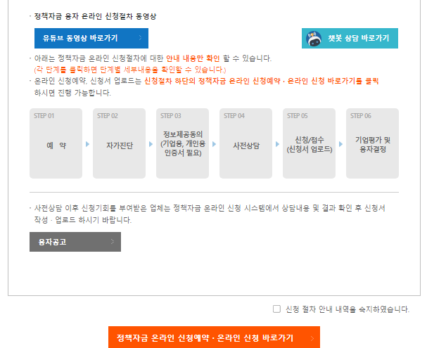 중소기업 정책자금 융자 신청은 회원가입 후 진행해야 하며, 융자 신청은 온라인에서 먼저 신청 예약을 한 후 사전 상담을 받고 온라인 신청 순으로 진행됩니다.
