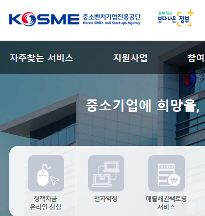 중소벤처기업진흥공단 홈페이지에 들어가 보시면 왼쪽 위 정책자금 온라인 신청이 있습니다. 클릭!