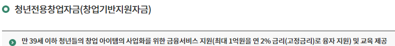 중소벤처기업 진흥공단에서 시행하는 청년전용 창업자금 제도.