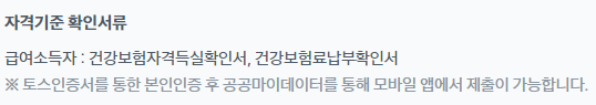 증빙연소득은 급여소득자인 경우 국민건강보험공단 보험료 납부확인서의 납부보험료를 기준으로 산정하며, 사업소득자인 경우에는 홈택스 소득금액증명원의 소득금액을 적용합니다.