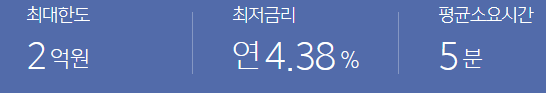 스마트폰을 통해 신청 하면 금리 및 한도는 2~3분만에 조회되고 대출금은 대출 실행을 하면 바로 사용할 수 있습니다.