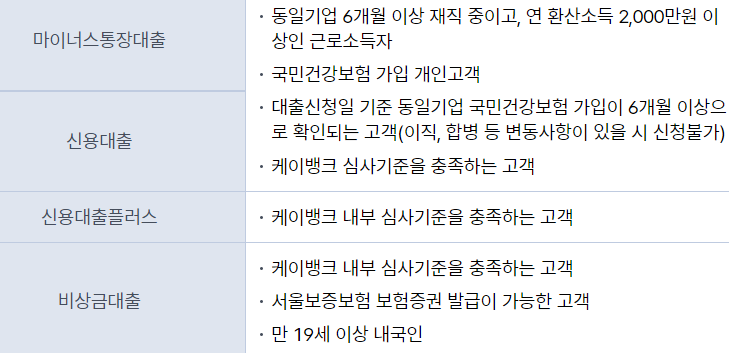 케이뱅크 마이너스통장 자격조건
