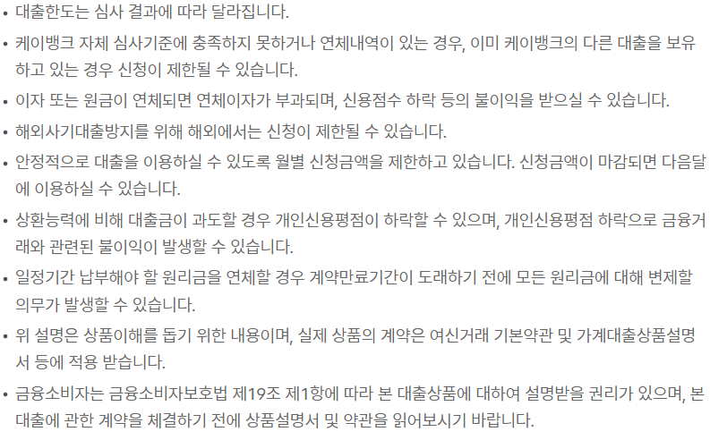 케이뱅크 마이너스통장 기타사항 및 신청방법