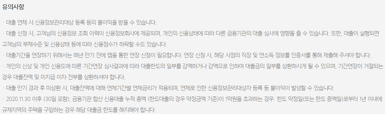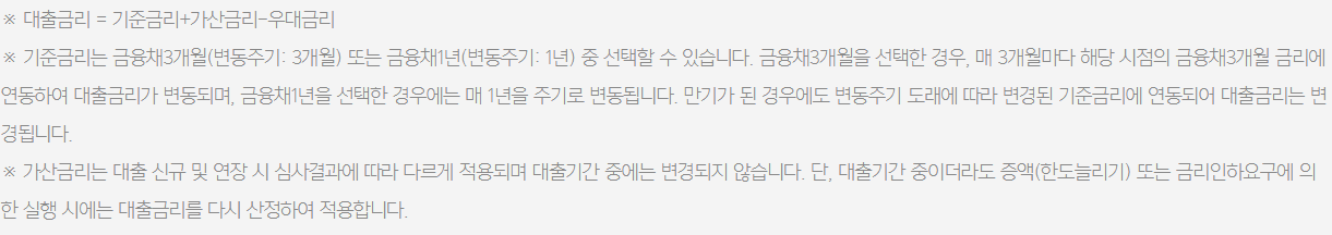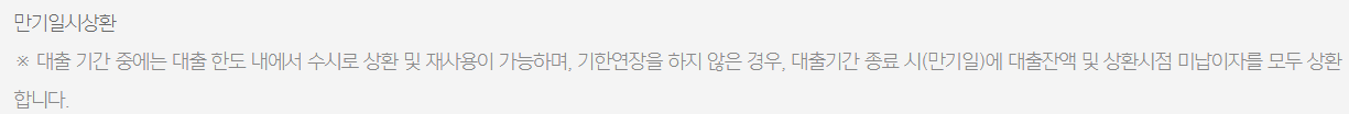 - 대출기간은 1년이며, 대출만기 전 연장 신청이 필요하며 심사 결과에 따라 1년 단위로 최대 10년까지 연장이 가능합니다.
