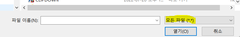 보통 파일 찾기 열 때 사용자 지정파일로 되어 있을 텐데 모든 파일로 바꾸어 주어야 합니다.