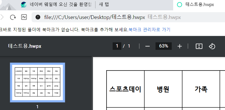 방식은 웹브라우저를 통해 문서를 여는 것인데 네이버 웨일을 다운만 받아놓으면 hwpx 파일 연결 프로그램으로 바로바로 열 수 있습니다.